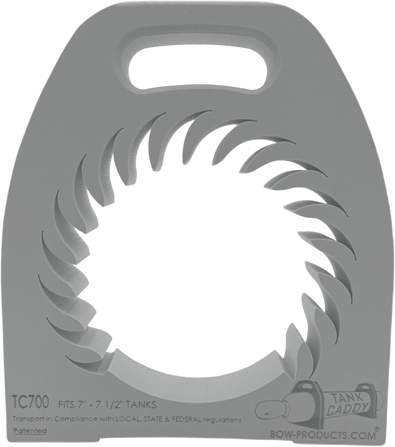 Tank Caddy by Bow Products - A Safety and Convenience Breakthrough Tank Caddy helps you more safely handle and transport welding gas cylinders. Have you ever struggled handling a gas cylinder? Have you struggled lifting a gas cylinder onto a welding cart? Have you struggled figuring out how to handle, load or secure a gas cylinder for transport? Anyone who has lifted, handled, or transported welding Gas Cylinders knows how difficult it can be. Tank Caddy from Bow Products helps make it easier and safer. The Patented Tank Caddy design with a built-in handle constructed with lightweight super strong/Durable XLPE material combine to give you a better tool to help handle Gas Cylinders. Our patented Tank Caddy accommodates a range of diameters and enables flex and grip for handling. With Tank Caddy, Lifting, Moving, Transporting and Handling welding Gas Cylinders has just gotten a whole lot easier and safer. Tank Caddy Benefits and Uses Transport, Stabilize and Secure - The Tank Caddy’s strong material and handles provide an additional method to secure the Cylinder during transport. Using tie down straps, feed the strap through the handle of each Caddy and secure to anchor points on the transport vehicle. Space the Tank Caddy’s along the Cylinder approximately 1/4 of the way in from each end of the Cylinder. This holds the Cylinder securely in place as the flat side of the Tank Caddy (opposite the handle), keeps the Cylinder flush to vehicle for added stability during transport. Remember that you must adhere to NHTSA transport guidelines for transport. Tank Caddy is just an aid in Lifting and Transporting. Lifting a cylinder into a Vehicle - Slide the Tank Caddy’s on to the Cylinder approximately 1/4 of the way in from each end of the Cylinder with the handles aligned in the same position. This gives you a lift assist versus a bear hug lift on a round surface. Tank Caddy material also helps protect the vehicle and Cylinders from scratches.