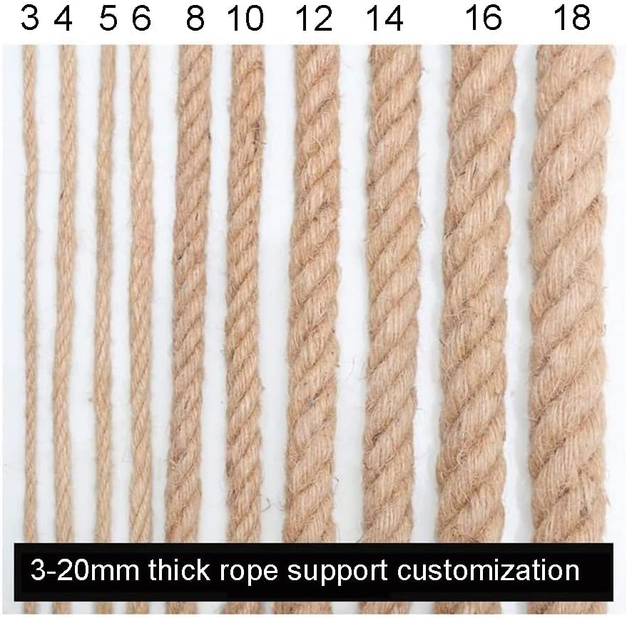 Hello, welcome to our store, we are happy that you can be interested in our products, hope our service can satisfy you and wish you a good shopping experience.product size:thick:12mm , 14mm , 16mm , 18mm , 20mmlength:20m , 30m , 40m , 50m , 60m , 70m , 80m , 90m , 100mproduct name:Jute ropeLength:20-100m, thick:12mm , 14mm , 16mm , 18mm , 20mm,You can according to the size you need,Jute rope macrame rope can be cut any length you want, and it won’t intertwined with each otherWide Application Area:Perfect for crafts, gardening, bundling, wooden tree swing, decorative fence projects, and much more. Jute rope is one of the most popular ropes for landscaping use.Note:The Hemp Rope contains a little oil in the manufacturing process to improve its flexibility and wear resistance. After 2-3 days of air-drying treatment, the oily smell will disappear.✍Tips:[1] Due to manual measurement, please allow 1-3cm error and make sure you don't mind before ordering.[2] The picture is for reference only, please refer to the object. Due to the different understanding of the spotlight and the color of different people, some color errors may occur, but within a reasonable range