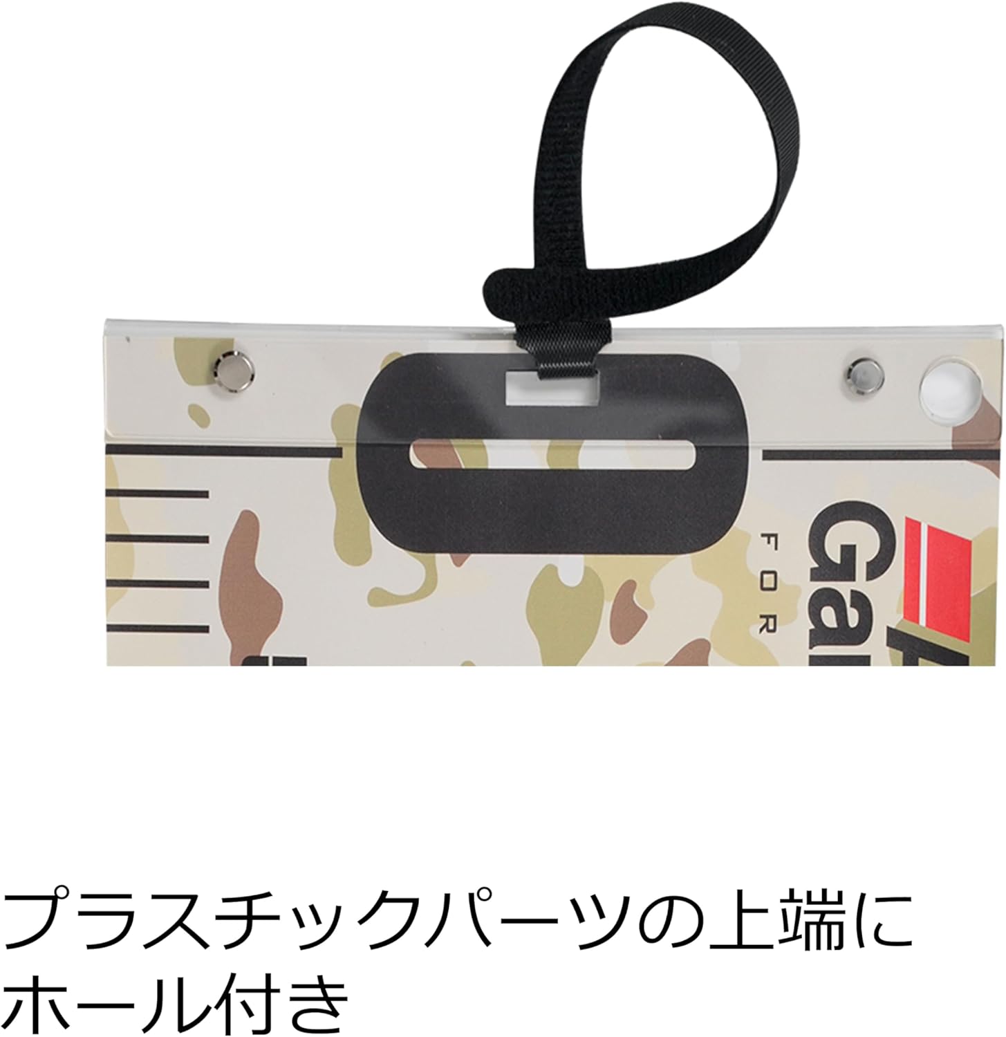 A wide fishing measure that can measure up to 35.4 inches (90 cm). Measures 7.9 inches (20 cm) wide to prevent damage to fish. Rolls up with Velcro at the tip for compact storage. Both ends are reinforced with plastic parts, and the top of the tip has holes that allow carabiners to pass through. Waterproof tarpaulin material