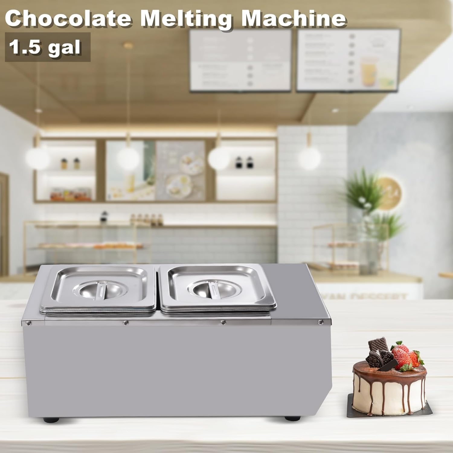 Application: This versatile chocolate melting machine is ideal for gently melting chocolate, butter, cream, and milk for baking and sauce making. It's also perfect for DIY crafts like candle and soap making. Suitable for commercial settings like bakeries, dessert shops, chocolate studios, and restaurants. Specification: Material: Stainless Steel Color: Silver Style: Modern Mounting Type: Freestanding Power: 800W Voltage: 110V Plug Type: American Standard Temperature Range: 30-85℃/86-185℉ Number of Pots: 2 Capacity per Pot: 3L/0.7 gal Total Capacity: 6L/1.5 gal Product Size (LxWxH): 42.5x22x17 cm / 16.73x8.66x6.69 in Each Pot Size: 15x13.5x10 cm / 5.91x5.31x3.94 in Net Weight: 4.1 kg / 9 lbs Notes: 1. Temperature Guidance: The melting point of chocolate is low. For best results, melt chocolate below 140℉. Please note there may be a tolerance of approximately ±50℉ in the displayed temperature. 2. Water Level Monitoring: Always ensure the water level is between the MIN and MAX lines during use. Do not let the machine run dry, and avoid overfilling. 3. Cleaning: Only wipe the machine body with a damp cloth. Do not immerse the main unit in water or rinse it directly. The stainless steel pots are removable for separate cleaning.