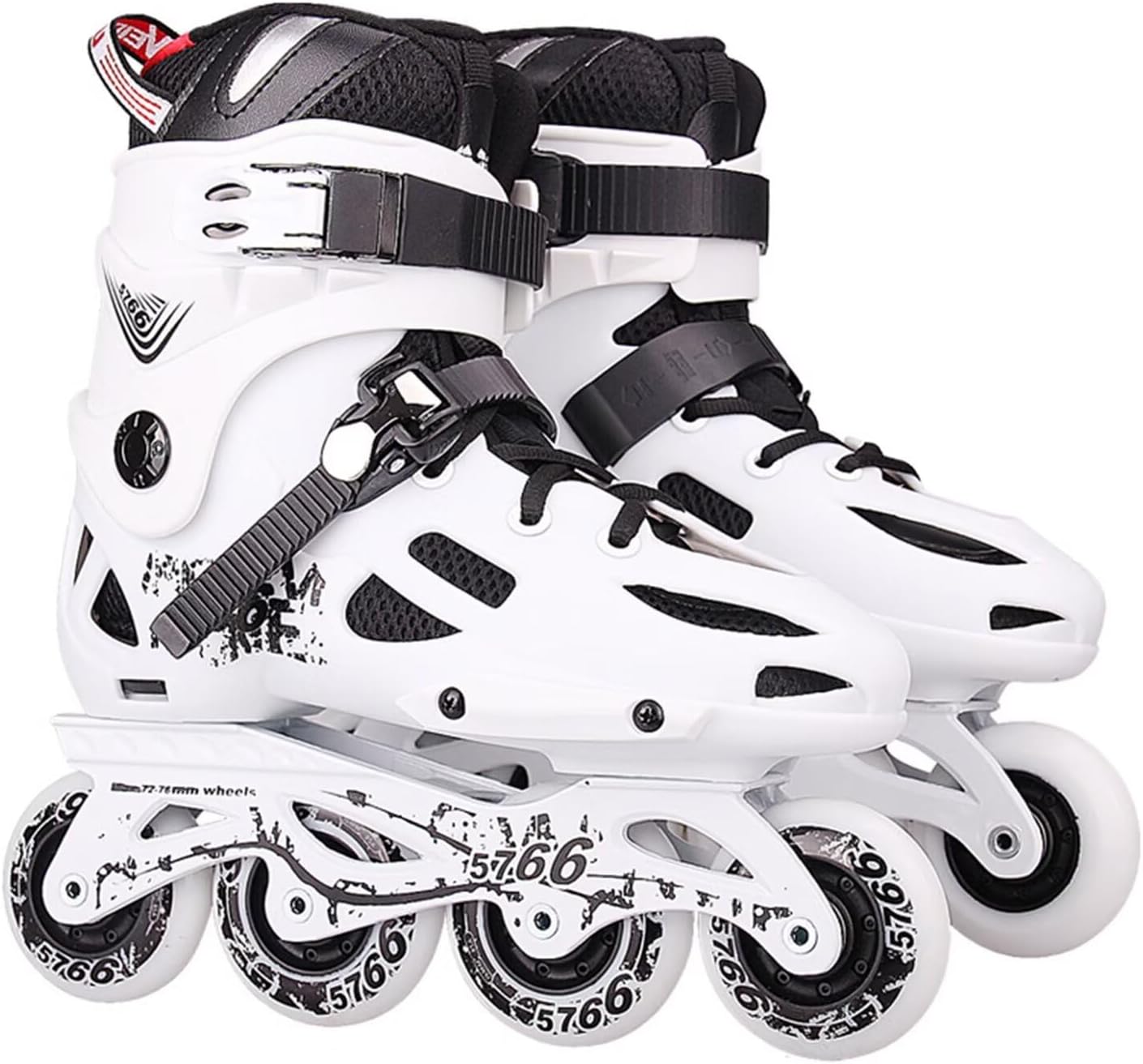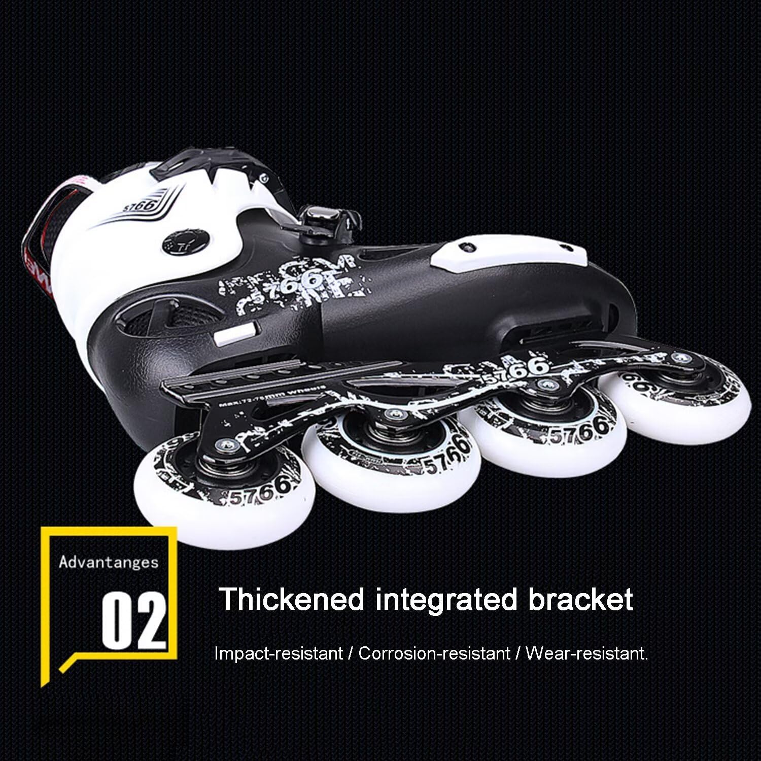❤ Inline Skates' Highlights: Unique pattern design:In line with the aesthetic of young people, keep up with the trend of fashion. Multi colors and sizes:Suitable for multi crowd, boys, girls, men and women all can have a try. Let's play skating outside together. Don't waste good weather and youth time. ❤Tool holder: thickened integrated tool holder Casing: high-strength impact-resistant PP shoe shell Wheels: 85A infused flat wheel Insole: breathable memory liner Bearing: ABEC-9 high-speed bearing Buck: main buckle + spider fine-tuning buckle Applicable range: street, flat, leisure ❤Most Frequently Asked Questions: ✔Size number is the same to normal shoes. You can check the image of size chart for specific length of the skates for reference. ✔Be available for outdoor and inside use. ✔All skates have only one brake on right foot. You can switch the brake to left with the wrench if you want. ✔A beginner may have difficulty to adapt the origin speed, tightening the wheels to reduce the fear and learn more quick. Loosen wheels again as you get accustomed in skating. ✔Always wear appropriate protective gear (wrist, arm and knee protection). Younger children should ride under adult supervision!