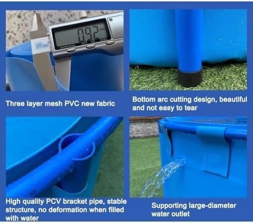 Discover our premium round fish pond, specially designed for outdoor enthusiasts and aquarium aficionados. This versatile temporary pond creates a serene water feature in your garden. Crafted from 0.96mm thick premium PVC, it ensures exceptional durability and abrasion resistance. The waterproof fabric is long-lasting and easily foldable for convenient storage and transport. Its vibrant blue design adds an elegant touch to any outdoor setting. Its design incorporates a robust support system, with strategically positioned support tubes around the perimeter ensuring structural stability. This meticulous construction minimises deformation risks, providing a secure habitat for fish. A practical drainage outlet allows for convenient maintenance when required. Imagine hosting family gatherings or summer parties beside your new pond, where guests can relax amidst the soothing sound of flowing water and the charm of aquatic life. Whether you're an fishkeeper or simply wish to enhance your outdoor space, this pond offers a practical and stylish solution. The kit includes the pond basin and mounting brackets for quick and effortless installation. Designed to meet the needs of both novice and experienced aquarists, this reliable and efficient pond is sure to elevate your outdoor experience.